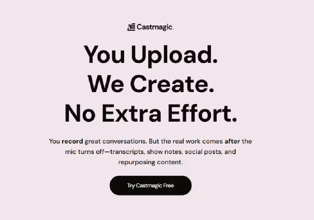 Castmagic automates these steps, allowing creators to focus on strategy, creativity, and distribution, not tedious manual work.