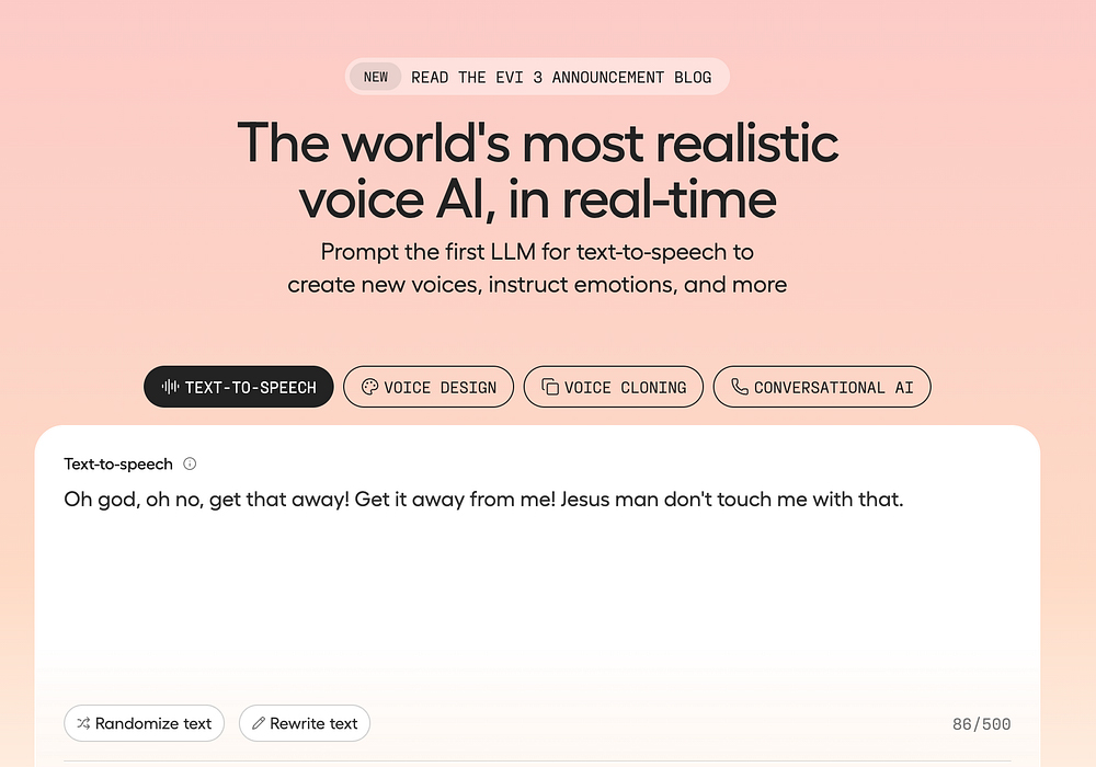 Hume AI is a developer platform that combines voice synthesis, emotional intelligence, and multimodal AI tools to create applications that speak, listen, and understand like humans. From expressive text-to-speech and voice cloning to emotion measurement and speech analysis, Hume transforms communication into empathetic, scalable AI interactions.