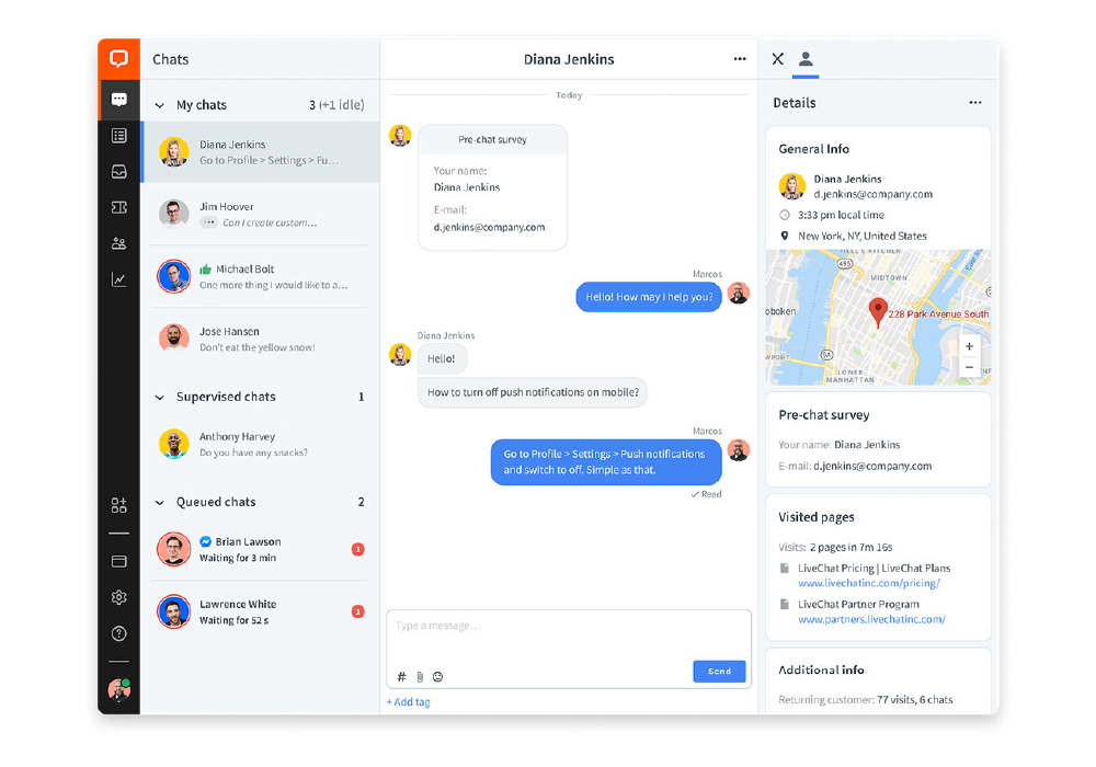 One of LiveChat’s strongest features is its ability to facilitate real‑time conversations with live agents. Instead of pushing visitors into ticket queues or automated responses, customers can speak directly with support team members who can resolve issues on the spot.