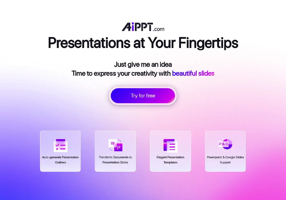 AI PPT focuses on converting thoughts, topics, or documents into well-structured slide decks. The platform uses artificial intelligence to understand user input and transform it into meaningful presentation outlines, content, and designs.