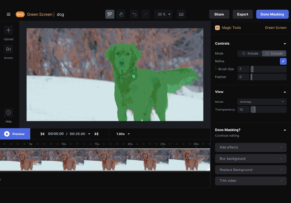 Advanced editing tools include motion tracking, green-screen removal, background replacement, and object manipulation—all powered by AI to simplify workflows.